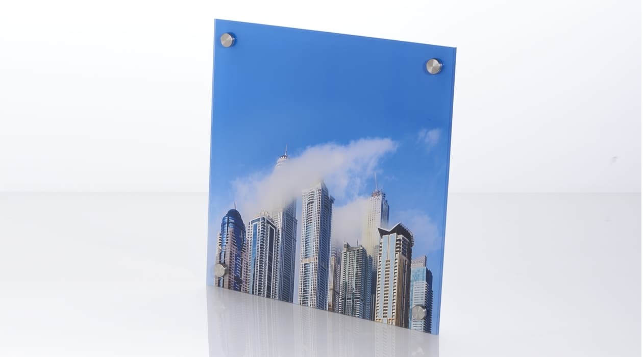 Classic acrylic displays are bright, enduring, and easy-to-install; they look gorgeous on their own and do not need additional frames. The prints look just as great as the ones made on the glass but do not have the disadvantages of the material, namely its heaviness and fragility. All that combined makes acrylic displays a cost-effective marketing and decorative solution that you can proudly hang anywhere.