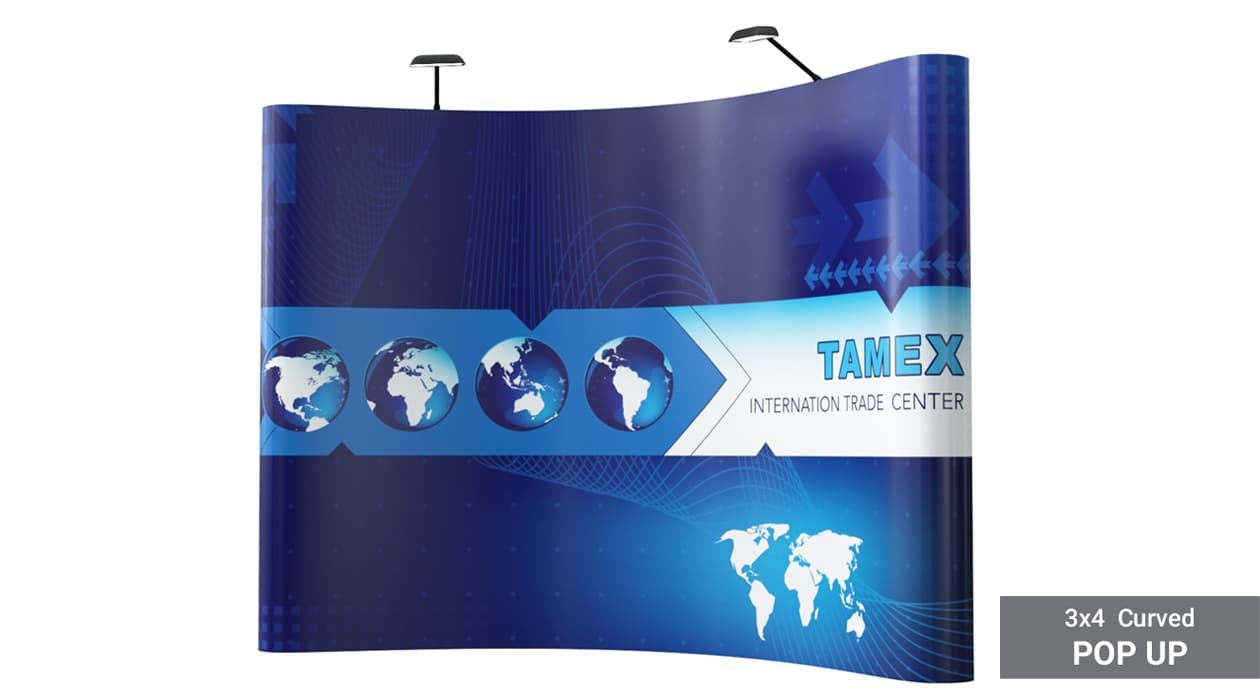 Our pop up stands have two types - Curved and Straight.