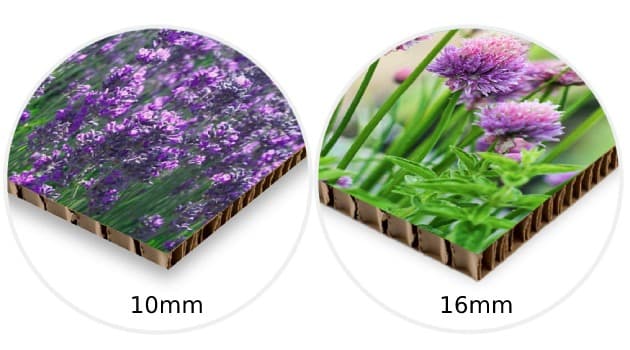And for the board thickness, we offer the following options: 5 mm, 7 mm, 10 mm, 16 mm. The next feature to select is the printed sides: do you want only one side printed, or you want both? Pick whichever option you need.