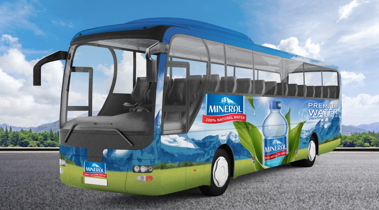 Decorate cars with your brand design and custom-printed advertisements. Order large format adhesive vinyl for your company vehicles. And when you plan an "out of home" advertising campaign, don’t forget about bus ads.