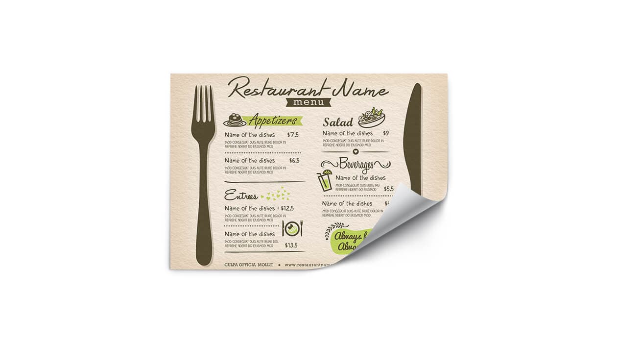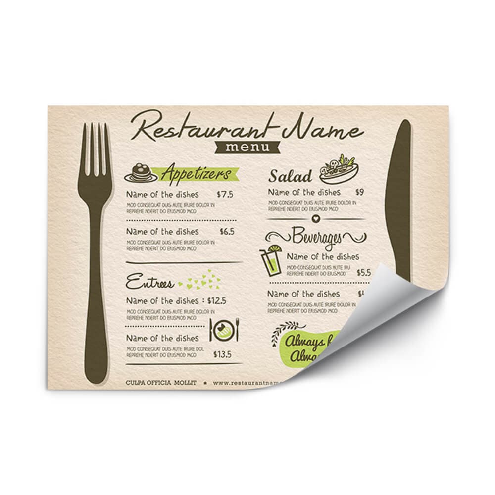 Using our platform, you can order a custom paper placemat that perfectly fits your needs.