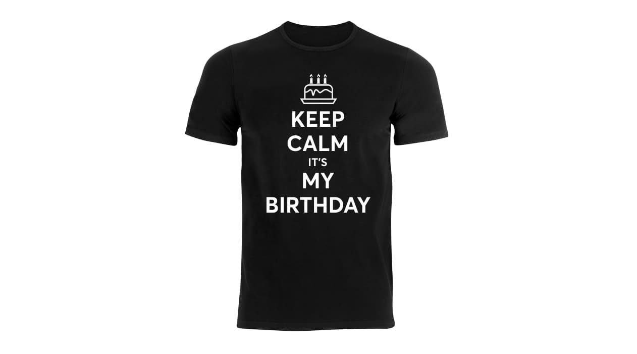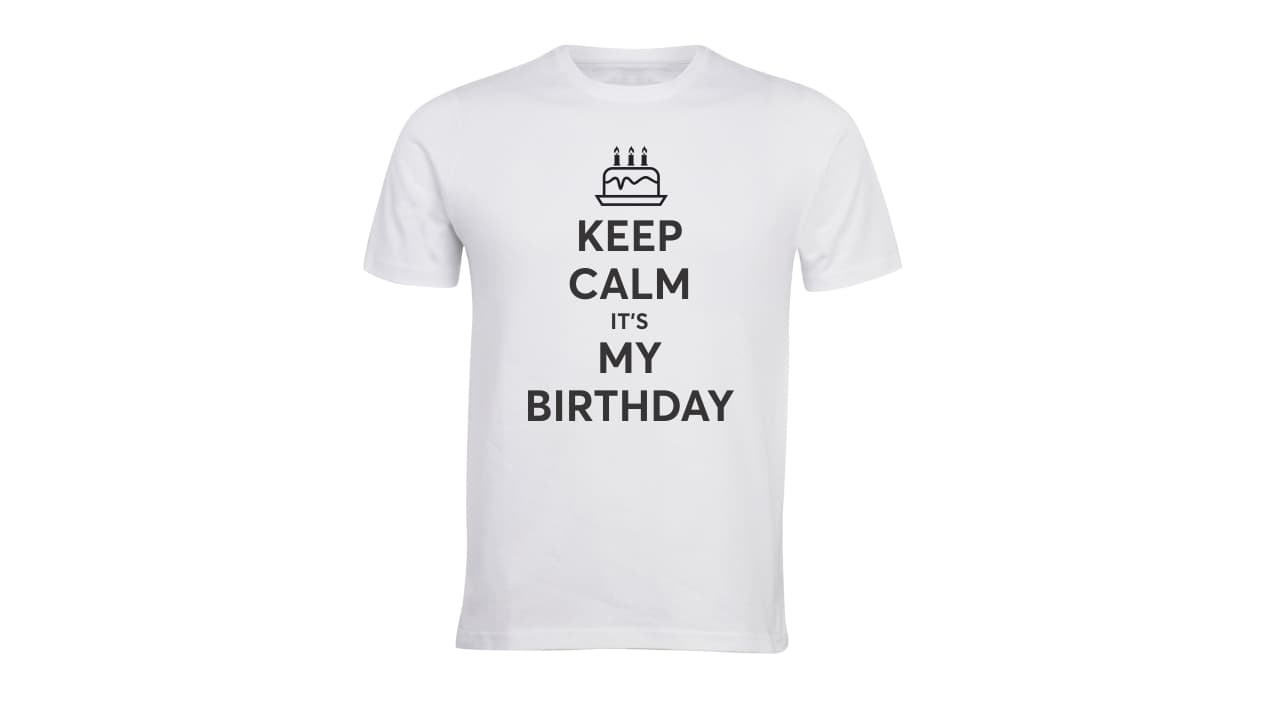 Stand Out with the Keep Calm It’s My Birthday T-ShirtThe comfortableness of versatility of T-Shirts has earned a lot of popularity in recent years. It is a clothing item you can wear in almost any weather and on many occasions, so no wonder you can find at least a couple of t-shirts in almost anyone’s wardrobe. But if you do not like wearing T-shirts everyone is wearing and want something more meaningful, our Keep Calm It’s My Birthday T-Shirt is for you. Their creative design will make a great addition to anyone’s collection. At Dubaiprint.com, we also think that Keep Calm It’s My Birthday T-shirt is one of the best presents you can make. It is a fun, creative, and comfortable gift that can raise a smile on even the grumpiest face. As a frequent gift receiver, you should know how cool it feels to get a present that is tailored specifically for you. It means the person, who gave you the present, cares about you and wanted to make you feel special. Leave behind generic presents that don’t say anything about you or the person you are gifting them to. Make it personal with Keep Calm It’s My Birthday T-Shirt. Special Features of Our Keep Calm It’s My Birthday T-shirtWhen ordering our T-Shirts you will have the following options to choose from. Your Keep Calm It’s My Birthday T-Shirt can be printed on an either white or black t-shirt. The following sizes are available: • White - S, M, L, XL, 2XL and 3XL• Black - M, L, XL, 2XL, and 3XLOur T-Shirts are made of 100% cotton with 180 GSM Round Neck design. The printing area of the T-shirts is 30 x 40 cm. You can choose to print on the front or back side of the T-shirt.If you want the T-shirt to serve for a long time, follow these simple washing instructions:• before washing, reverse the t-shirt,• do not bleach,• use cold or normal water (recommended 20°C), shrinkage 5-7%.